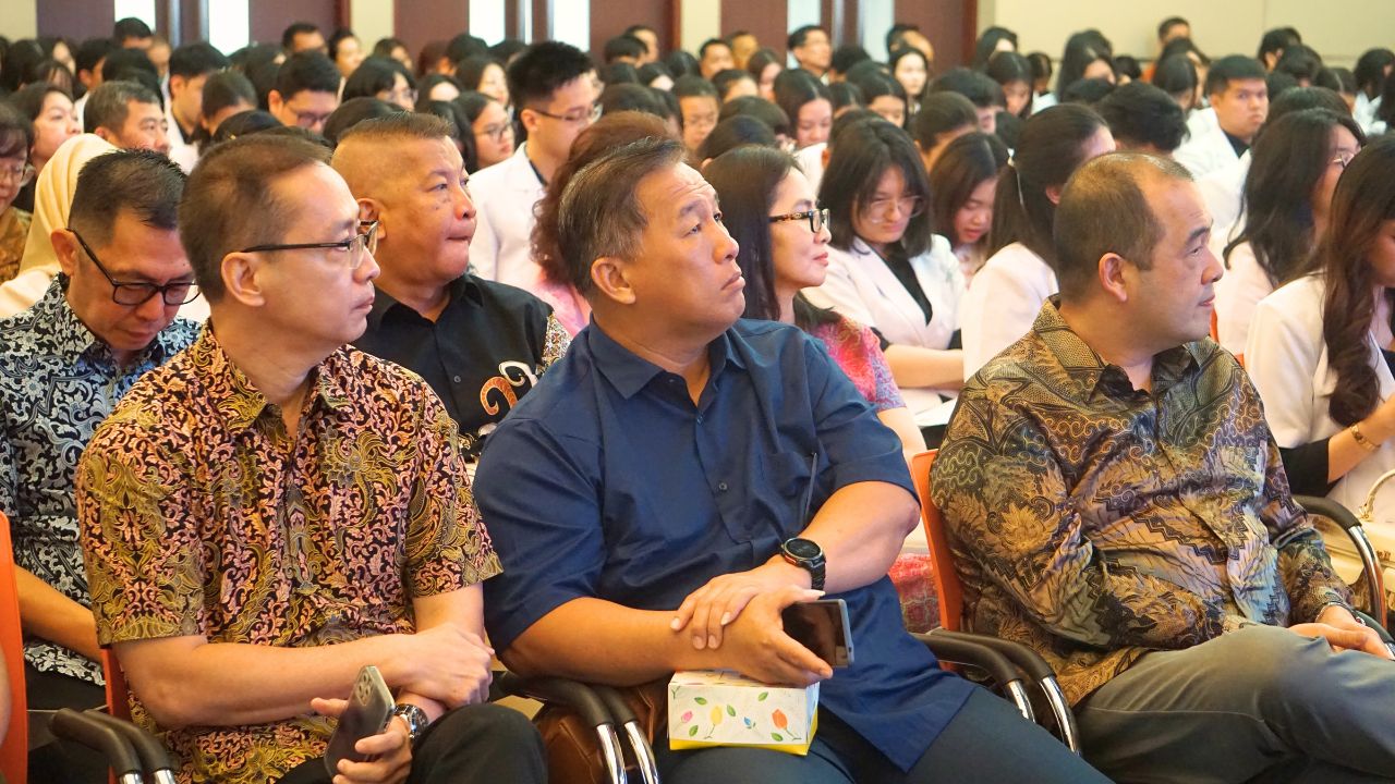 “Kami menyampaikan rasa hormat dan terima kasih yang mendalam atas kepercayaan Bapak dan ibu yang telah mempercayakan pendidikan anak-anak kepada Unika Atma Jaya. Kami mohon dukungan selama dua tahun ke depan yang akan dijalani para dokter muda. Berikan kepercayaan kepada mereka untuk belajar dari kesalahan, melakukan evaluasi diri dan memperbaikinya, agar menjadi individu mandiri, bertanggung jawab terhadap profesinya,” tegasnya.