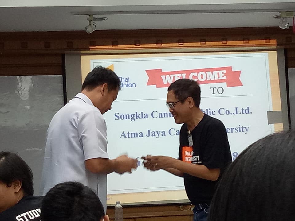 Presentasi awal oleh Konjen Indonesia ( Mr. Samsul Rizal ) dengan topik “Indonesia – Thailand Relations Way Forward in Southern Thailand”. Banyak mahasiswa kita yang bertanya diantaranya Intan dan William. Setelah istirahat makan siang dilanjutkan presentasi oleh Dr. Nawit Amage dosen dari Program in Human Resource Management - Faculty of Humanities and Social Sciences dengan topik “A Proposed Model of Development Competencies for Thai -Malaysian Border Trade Entrepreneurs to Support the ASEAN Economic Community “ presentasi ini dihadiri oleh mahasiswa dari Thaksin University dan rombongan visit studi mahasiswa dari Unika Atma Jaya, serta beberapa dosen dan staf kependidikan Thaksin University. Presentasi diakhiri oleh mahasiswa FIABIKOM Prodi ABI yaitu Grace dan Nathan dengan topik “Online Shopping Preference Among Youth in Indonesia and Thailand”. Acara ditutup dengan permainan keakraban antara mahasiswa Unika Atma Jaya dan mahasiswa Thaksin University sebagai pemandu acara.