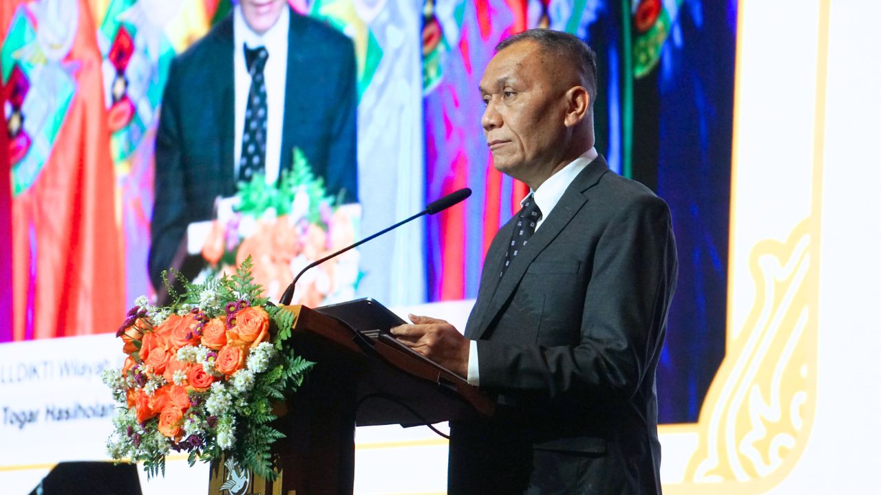 Kepala LLDIKTI Wilayah III, Dr. Henri Togar Hasiholan Tambunan, S.E., M.A., menyampaikan bahwa di tengah digitalisasi, tantangan ekonomi, dan dinamika sosial yang terus bergerak, semangat bergerak bersama menjadi kunci.