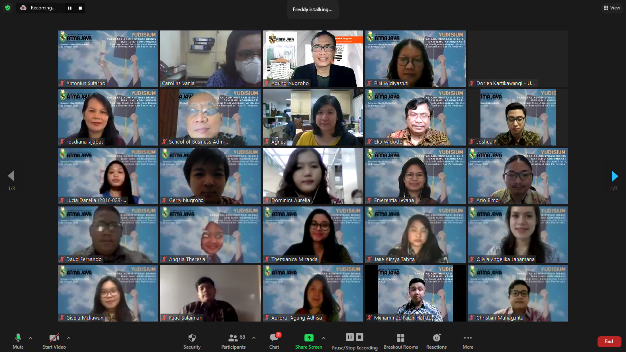 Acara dibuka dengan lagu Indonesia Raya. Kemudian doa pembuka. Setelah itu Dekan memberikan sambutan dan wejangan bagi para mahasiswa yang sudah lulus dalam semester ini. Pada intinya Dekan mengucapkan selamat pada para mahasiswa yang telah berhasil menyelesaikan studinya di tengah-tengah suasana pandemi yang tidak mudah. Keberhasilan menyelesaikan tantangan ini akan menjadi bekal bagi mahasiswa dalam menghadapi tantangan masa depan yang semakin kompleks dan beragam. Diharapkan dengan bekal yang telah diteroleh, mahasiswa dapat meniti karier dan kehidupan di masa depan dengan lebih baik.