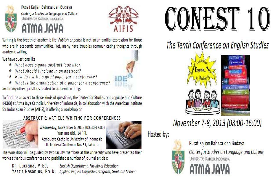 Pada 7-8 November 2013, PKBB mengadakan the Tenth Conference on English Studies (CONEST 10) di Gedung Yustinus, Lantai 14. Konferensi yang terdiri dari 3 sesi pleno dan 30 sesi paralel ini menghadirkan 41 pemakalah dari berbagai daerah di Indonesia. Konferensi tahunan PKBB ini mengangkat berbagai isu yang berhubungan dengan bahasa Inggris, di antaranya metode pengajaran bahasa Inggris, evaluasi belajar bahasa Inggris, dan bahasa Inggris pemelajar.