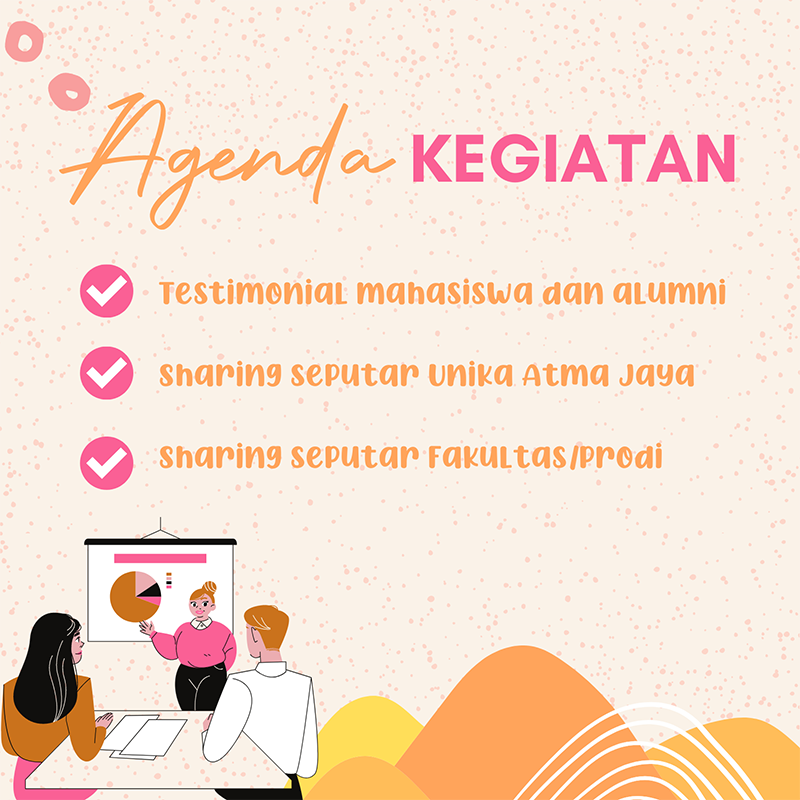 Sebagai institusi pendidikan tinggi di Indonesia, Universitas Katolik Indonesia (Unika) Atma Jaya menghadapi tantangan dalam melahirkan generasi pemimpin yang cemerlang, berkarakter unggul, profesional, serta peduli, yaitu tanggap terhadap perubahan zaman saat ini. Menyadari tantangan itu, UAJ (Unika Atma Jaya) konsisten dalam membentuk dan mengembangkan soft skills generasi muda saat ini dengan salah satu upayanya, yaitu mengadakan Virtual Open House 2021 dengan salah satu sesinya adalah Sharing Session oleh alumni dan mahasiswa aktif. Acara ini akan dilaksanakan pada: