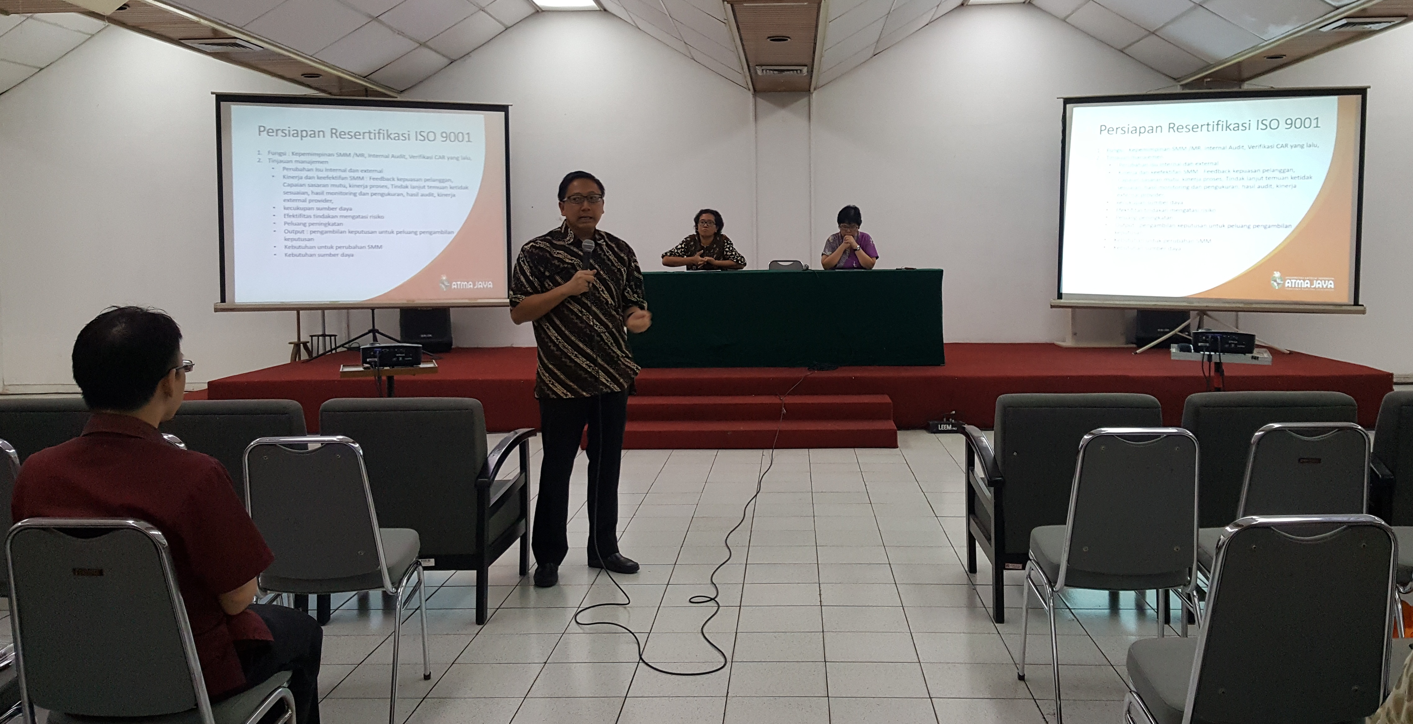 Jakarta – Pada 24 Oktober 2018 lalu, LPM Unika Atma Jaya melakukan Closing Meeting Audit Mutu Internal dalam rangka melakukan Evaluasi Pelaksanaan Standar dalam Kerangka SPMI periode September-Oktober 2018. Kegiatan ini dipimpin oleh Ibu Magdalena S. Halim selaku Ketua LPM UAJ dan Ibu Maria Virgin Tapoona selaku Kapus Monitoring dan Evaluasi LPM UAJ. Closing Meeting ini dihadiri oleh Rektor, Warek I, Warek II, Warek III, Kaprodi dan Kepala Biro di UAJ. Berdasarkan hasil audit yang sudah dilakukan, jumlah auditee untuk periode ini ada 45 dan yang sudah diaudit ada 44 auditee. Adapun standard yang diaudit untuk periode ini ditambah yaitu standard Penelitian serta Pembelajaran dan Pengabdian kepada masyarakat.