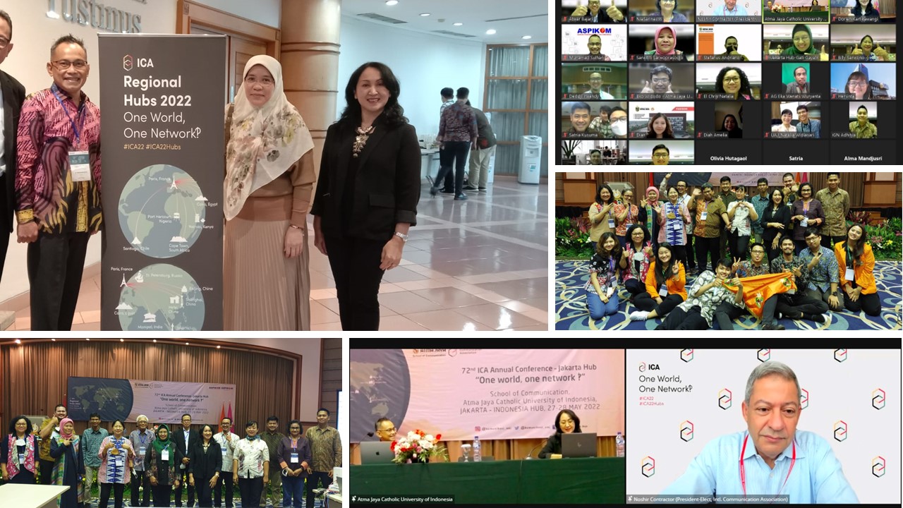 Program Studi Ilmu Komunikasi Unika Atma Jaya mendapatkan kehormatan untuk kedua kali sebagai penyelenggara International Communication Association (ICA) Conference di tahun 2022 ini. Jakarta menjadi tuan rumah, beserta dengan 11 kota besar lainnya di dunia. Tahun ini penyelenggaraan konferensi tahunan ICA dipusatkan di Paris, Perancis. Namun pada saat yang saya juga diselenggarakan konferensi paralel di 11 kota di dunia yaitu: Jakarta, Indonesia. Beijing, China, Port Harcourt, Nigeria, Shanghai, China, Cape Town, South Africa, Manipal, India, Cairo, Egypt, St. Petersburg, Rusia, Nairobi, Kenya, Santiago, Chile dan Hefei, China. Konferensi ini terselenggara pada tanggal 27-28 Mei 2022.