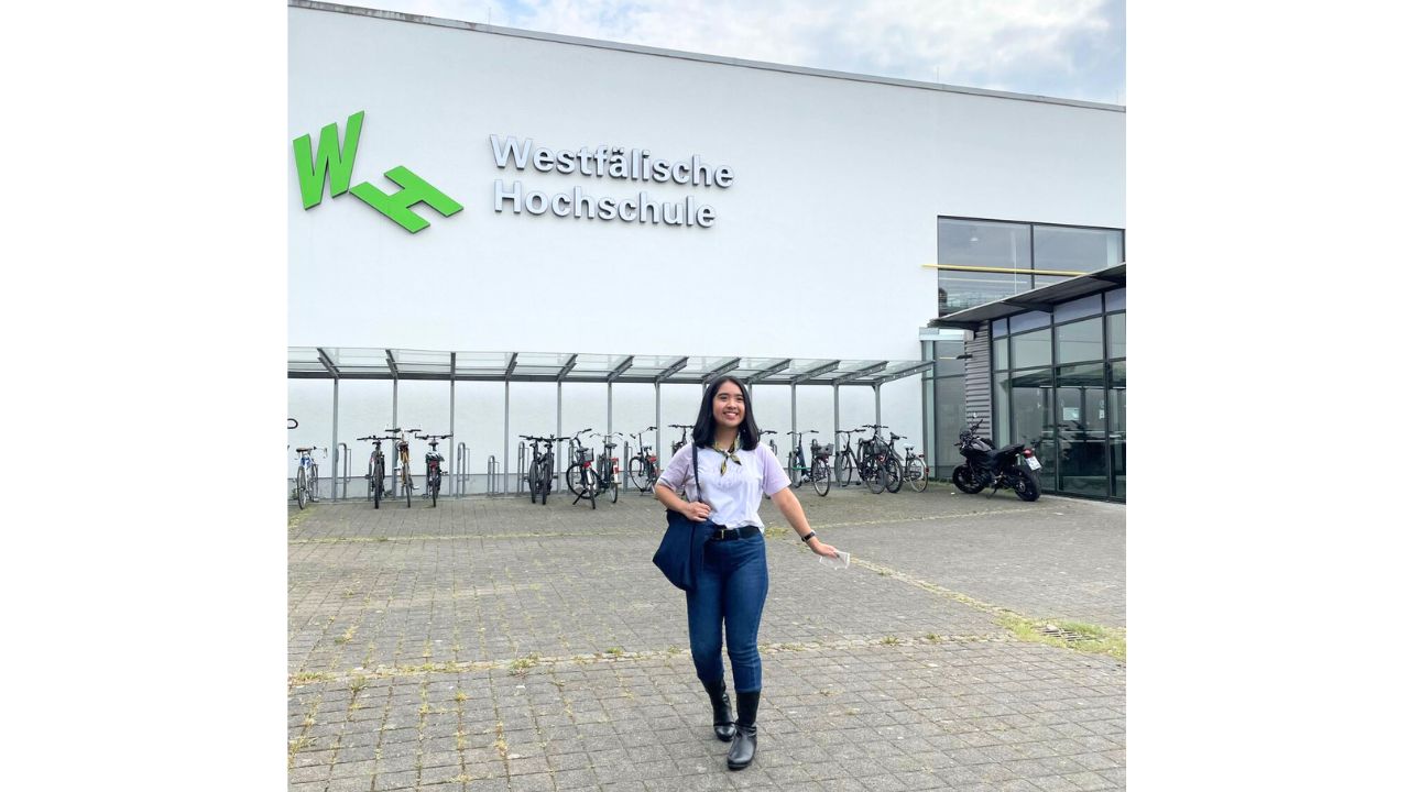 Tahun 2022 menjadi titik balik dalam hidupnya. Ia mengikuti program pertukaran pelajar ke Westfälische Hochschule Gelsenkirchen di Jerman. Jurusan yang diambilnya, Journalism and Public Relations, memperluas cara pandangnya terhadap dunia komunikasi. “Mahasiswa di sana berani sekali berpendapat. Aku belajar banyak soal kepercayaan diri,” ujarnya.