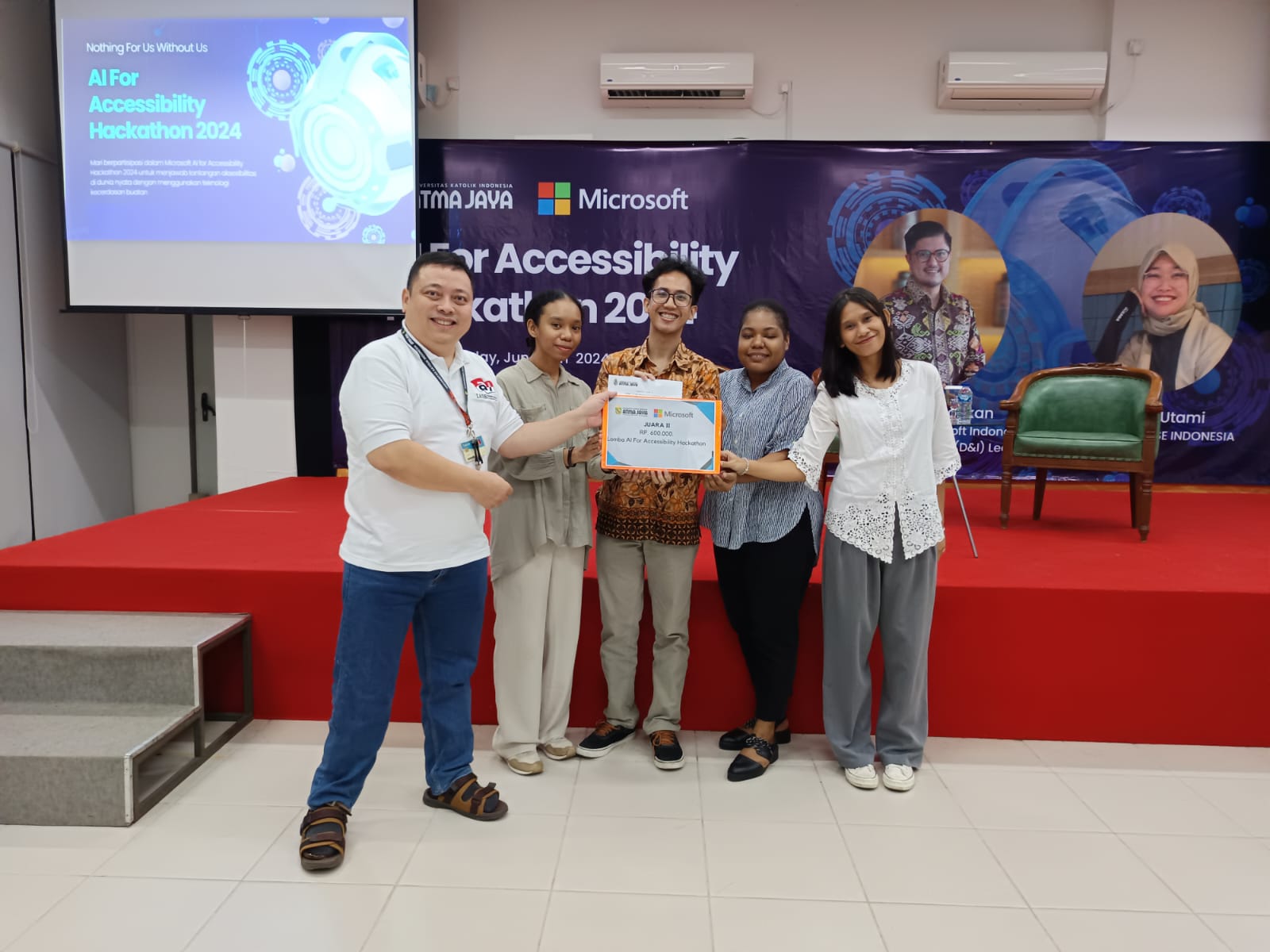 Acara Final Microsoft AI for Accessibility Hackathon 2024, yang dilaksanakan di Kampus III Unika Atma Jaya pada tanggal 13 Juni 2024, dihadiri oleh
