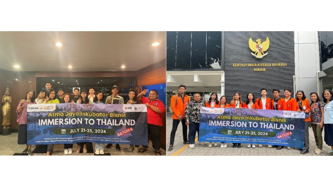 Program Immersion to Thailand, Bangkok, berlangsung pada 21–25 Juli 2024 dengan total peserta 9 mahasiswa, terdiri atas 6 mahasiswa dari program Holistic Course (FEB) dan 2 mahasiswa dari Spark Course (FTb). Program ini didampingi oleh 4 pendamping, yaitu 3 dari AJIB dan 1 dari International Office. Tujuan kegiatan ini adalah memberikan pengalaman internasional melalui kunjungan akademik, networking, dan eksplorasi budaya, serta memperkenalkan mahasiswa pada ekosistem bisnis dan budaya di Thailand.