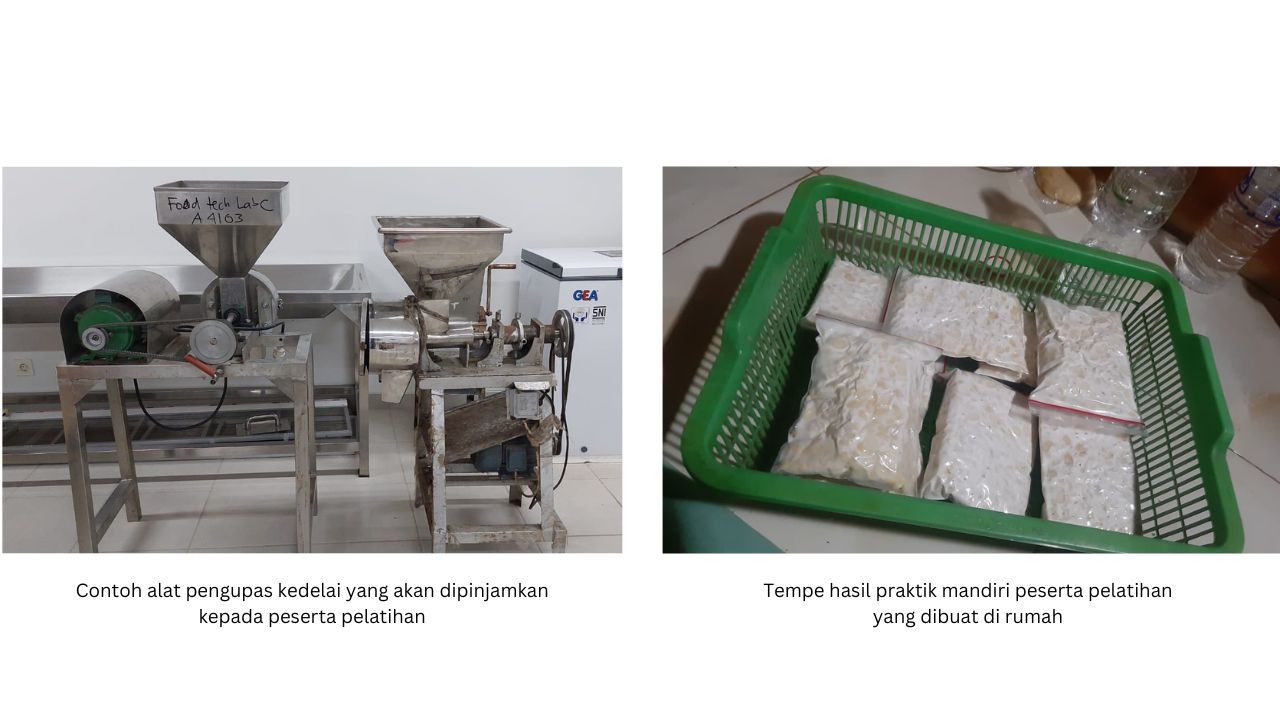 Pelatihan diikuti oleh 10 orang peserta dari Komunitas Bandungwangi. Sebagai dukungan untuk praktik mandiri di rumah, setiap peserta menerima paket berupa kotak kemasan plastik, kedelai kupas, dan ragi tempe. Peserta yang serius ingin mengembangkan produksi tempe juga akan diberikan pinjaman alat pengupas kedelai.