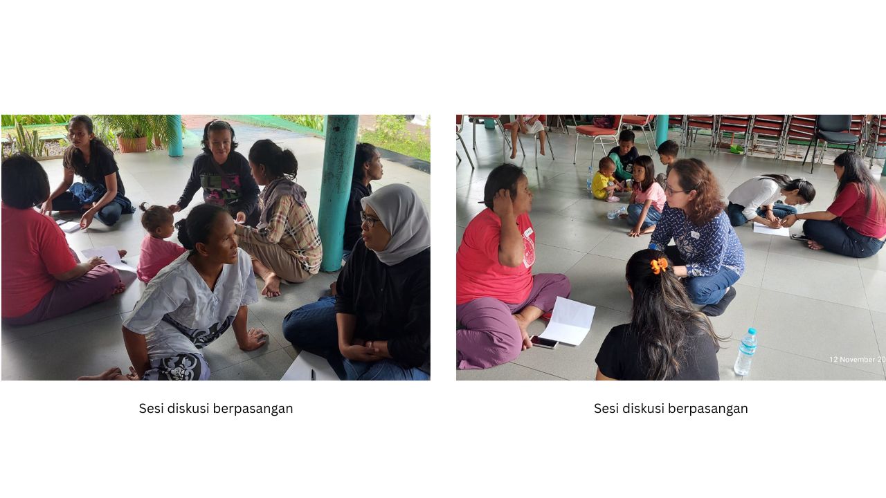 Dalam diskusi kelompok, peserta menyampaikan berbagai alternatif usaha yang ingin dicoba—di antaranya usaha laundry dan usaha tempe. Mereka juga berbagi pengalaman kerja sebelumnya, seperti berdagang rokok, menjual rongsokan, menjaga kontrakan, membantu berjualan nasi uduk, hingga berjualan seblak. Namun sebagian usaha terhenti karena kendala modal, kesehatan, maupun perubahan situasi keluarga.