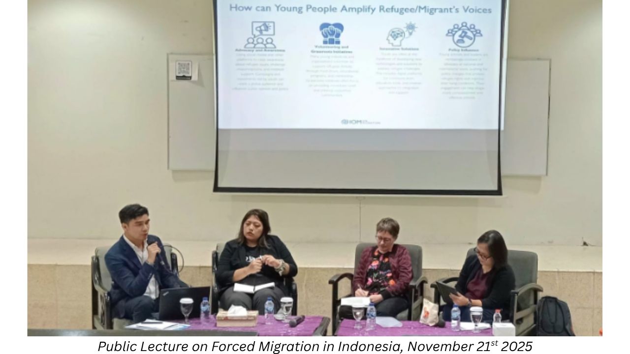 Seminar ini membahas isu migrasi paksa, penanganan pengungsi, dan kerja sama internasional melalui tiga materi utama yang disampaikan oleh Prof. Antje Missbach dari Fakultas Sosiologi Universitas Bielefeld Jerman, Dwita Aryani dari UNHCR, dan Akmal Haris dari International Organization for Migration (IOM), dengan Stefani Haning Swarati Nugroho, M.A., Ph.D. dari Fakultas Psikologi UNIKA Atma Jaya sebagai narasumber. Dalam materi Studying The Forced Migration-Religion Nexus, Prof. Antje Missbach menjelaskan bahwa hubungan antara migrasi paksa dan agama masih kurang mendapat perhatian dalam kajian migrasi, padahal agama sering berperan penting dalam seluruh proses migrasi, mulai dari keputusan untuk berpindah, perjalanan, masa tinggal di negara transit, hingga proses bertahan hidup di negara tujuan. Agama tidak hanya memberi harapan, identitas, dan stabilitas emosional bagi migran dan pengungsi, tetapi juga menjadi dasar terbentuknya jaringan sosial serta dukungan praktis melalui organisasi keagamaan yang kerap menyediakan bantuan kemanusiaan, perlindungan, dan ruang penerimaan sosial.
