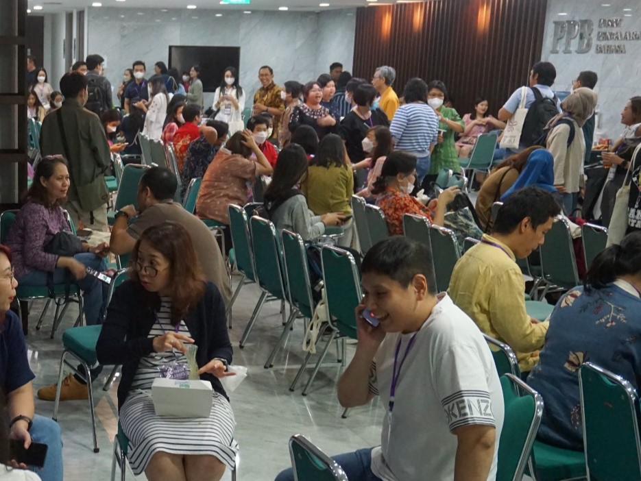 Temu alumni FP 2023 diawali dengan makan bersama. Di agenda ini terjadi banyak perjumpaan, dosen dengan alumni, alumni dengan tenaga kependidikan, senior dengan yunior, dan sahabat lama dengan sahabat baru. Setelah makan bersama, seluruh tamu masuk Aula Yustinus Lt.15.