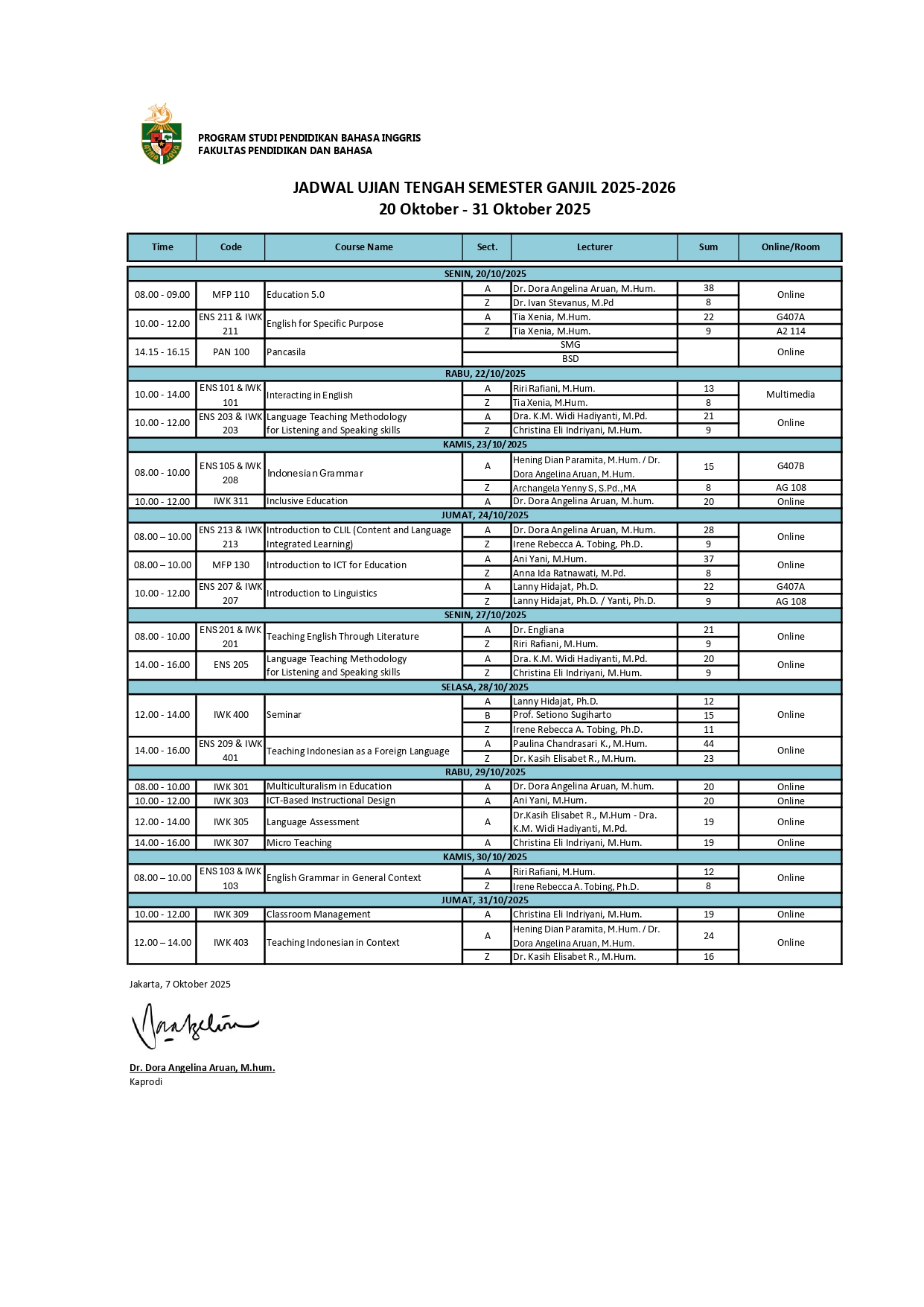 JADWAL UJIAN TENGAH SEMESTER GANJIL 2510 PBI