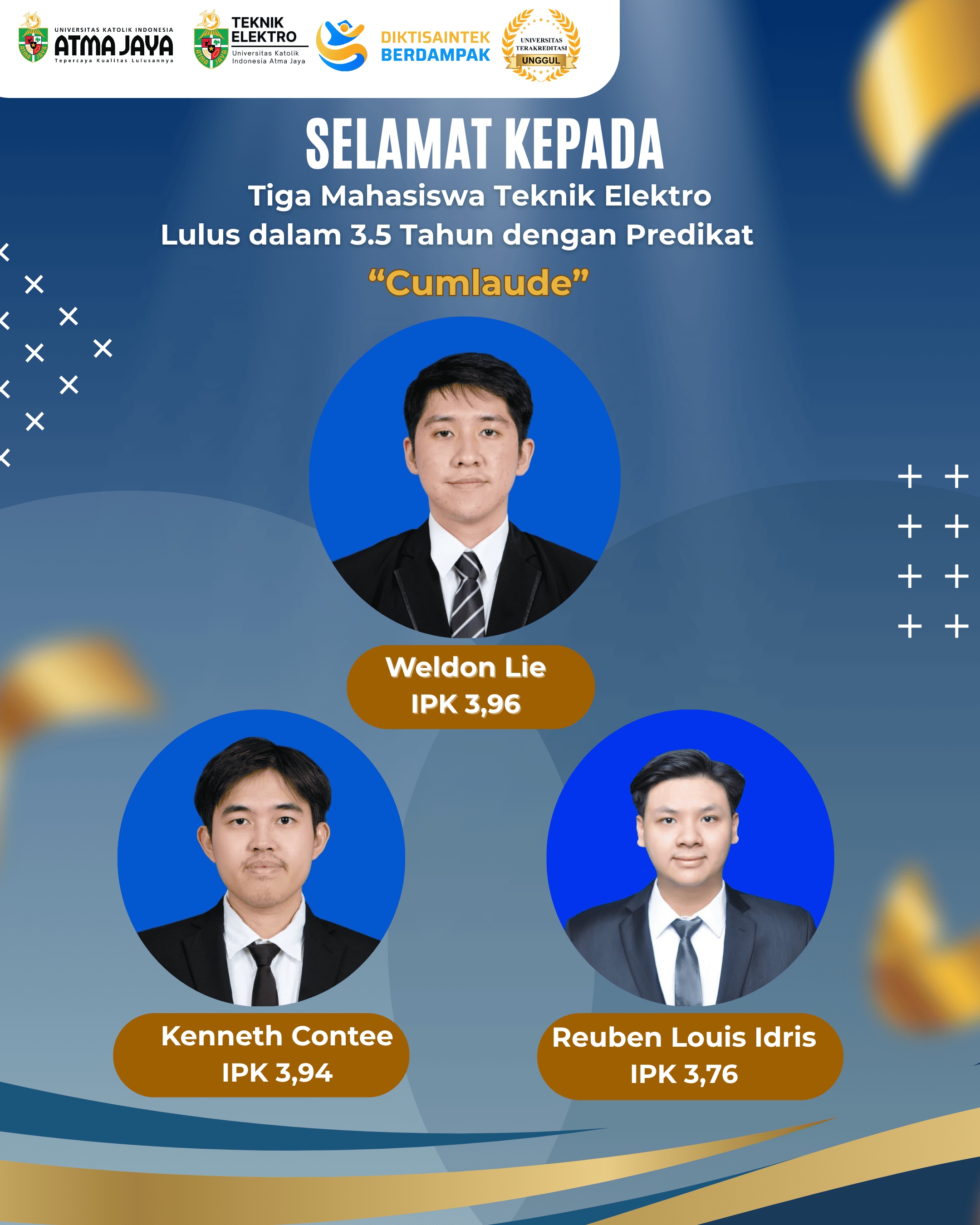 Saya sangat senang berkuliah di Atma Jaya, saya mendapat berbagai ilmu dan pengembangan diri, baik dalam hal pendidikan di bidang Teknik serta organisasi di FT melalui organisasi BPM FT hingga dipercayakan menjadi Ketua pada tahun terakhir saya berkuliah. Dalam proses ini saya bertemu banyak orang baru, mulai dari rekan sesama mahasiswa hingga staff dan dosen. Saat magang, Saya berkesempatan untuk mengikuti Proyek Internasional GIPE yang diselenggarakan oleh DAAD Jerman. Saya mendapat banyak pengalaman brainstorming dan pembuatan website Rumah Retret Puspanita dalam rangka modernisasi bersama teman baru dari beberapa negara.